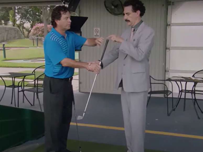 A Amazon divulgou uma cena inédita de "Fita de Cinema Seguinte de Borat", em que Sacha Baron Cohen retoma seu papel de Borat para aprender a jogar golfe. Na verdade, tudo o que ele consegue é enlouquecer o instrutor, numa sequência de piadas visuais hilárias, que lembram de Charles Chaplin aos Três Patetas.