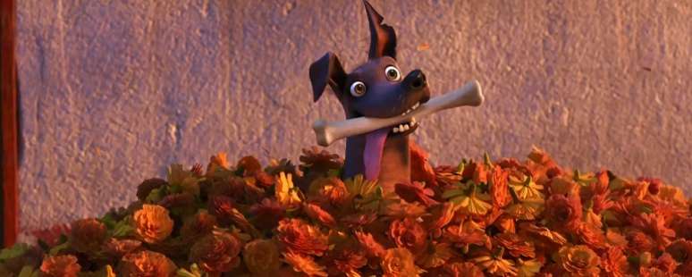 Cachorro amigo do protagonista da animação Viva - A Vida é uma Festa estrela curta aventuresco