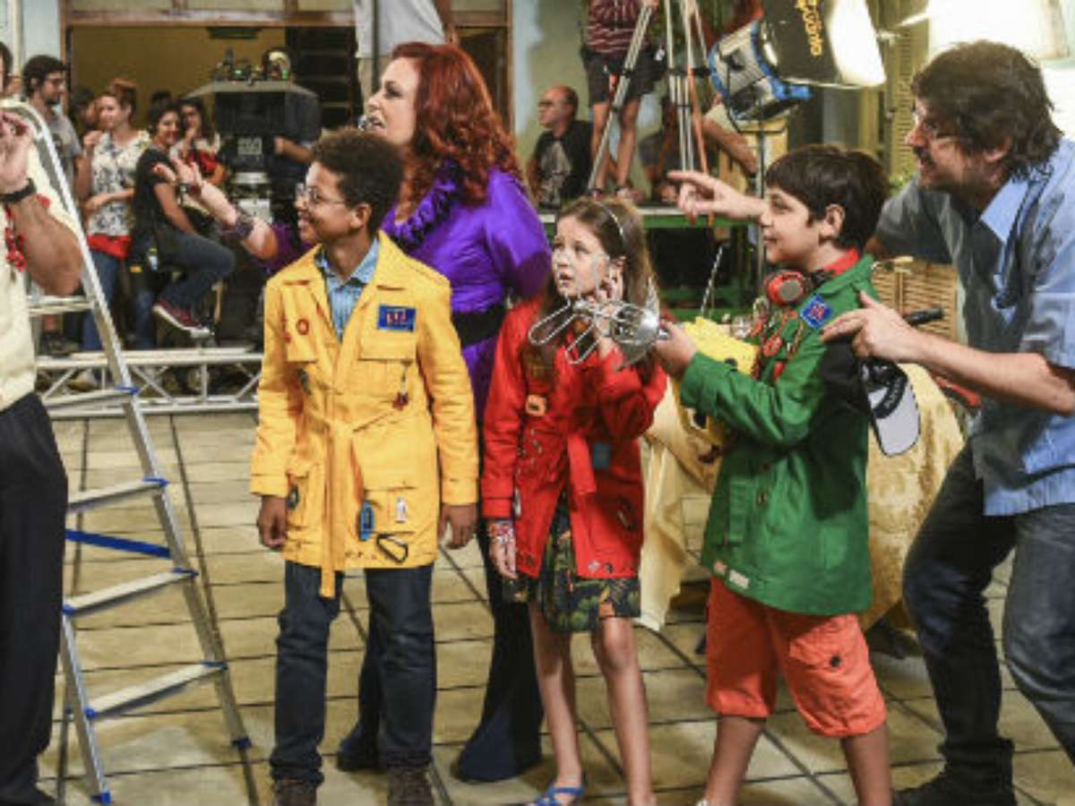 Virar coisas significa que a turma dos efeitos especiais vai entrar em ação. Com mais frequência do que na série. " O tempo do cinema permite que a gente possa fazer mais efeitos", admite o diretor. Dessa vez, as crianças vão passar boa parte da ação fora do famoso prédio. As externas incluíram até um submarino real, quando Letícia provocou um... acidente envolvendo alguns peixinhos. Confira na reportagem.