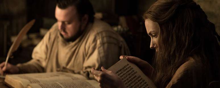 Se você não percebeu a ligação, observe: aquela mão esquisita que aparece na porta da cela é do ex cavaleiro de Dany (Emilia Clarke), e percebe-se que a sua doença piorou um bocado desde a última vez que ele apareceu na temporada anterior. O trecho do livro fotografado conta histórias de Vidro de Dragão sendo usado para curar o Escamagris ao longo da história dos Sete Reinos.