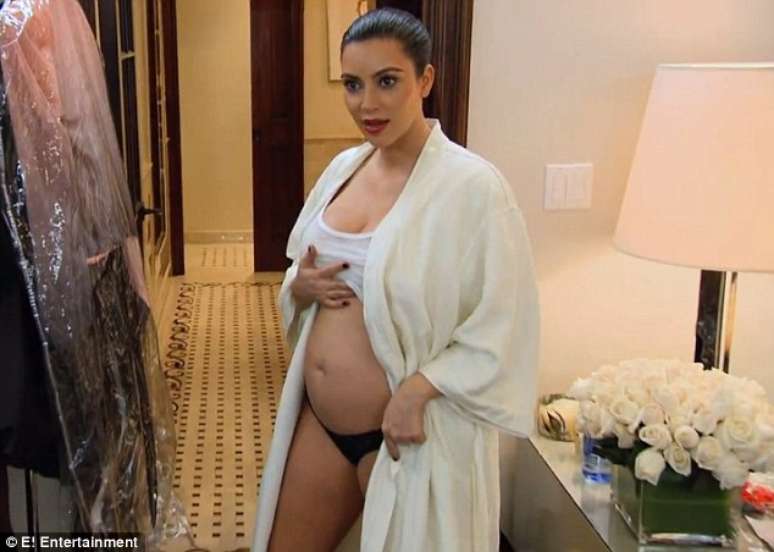 Grávida de sete meses, Kim Kardashian mostrou a barriga em um vídeo promocional do reality show Keeping Up With The Kardashians e questionou: "como eu fiquei desse jeito?", em relação ao tamanho de sua barriga, que gera comentários na mídia. As informações são do Daily Mail.