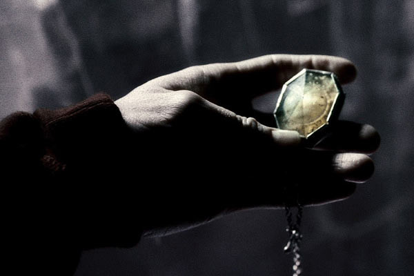 Harry segura medalhão que pode ser uma Horcrux, um fragmento de alma, de Voldemort
