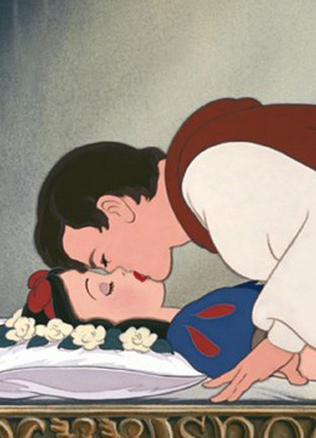 Tempos mais tarde, o espelho conta para a rainha que Branca de Neve continua viva e mostra onde ela está escondida. Ela, então, se transforma em uma senhora e vai até a cabana para oferecer à enteada uma maçã envenenada. A jovem cai na conversa da madrasta, morde a fruta e desmaia em um sono profundo. Ela desperta com um beijo de amor, dado pelo Príncipe Encantado.