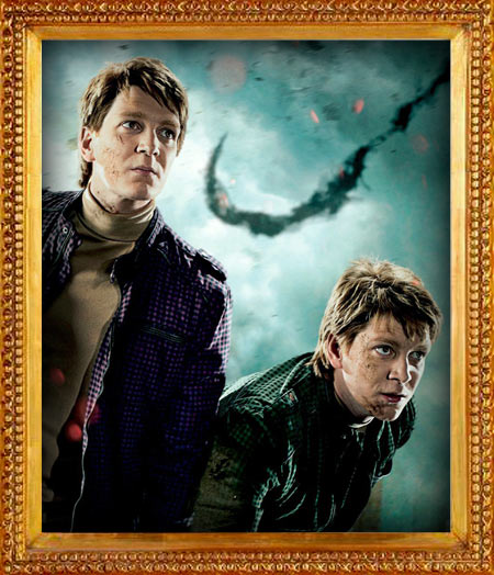 Filhos de Molly e Arthur Weasley, os gêmeos sempre foram os alunos que mais aprontaram em Hogwarts. No 7º ano dos dois, quando a escola estava sob a tutela da "ditadora" Dolores Umbridge, eles decidiram deixar a instituição de ensino e abriram uma loja no Beco Diagonal, a Gemialidades Weasley, onde vendiam produtos para os alunos inventarem doenças e evitarem as aulas. Apesar das brincadeiras, sempre lutaram ao lado de Harry Potter e seus amigos e fizeram parte da Armada Dumbledore.