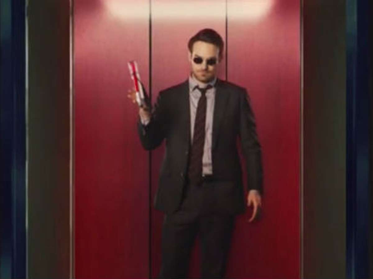 Já Luke Cage (Mike Colter) aparece no ringue de treinamento de Matt Murdock e provoca: "Ei, Demolidor, me fale quando você quiser lutar um round ou dois".