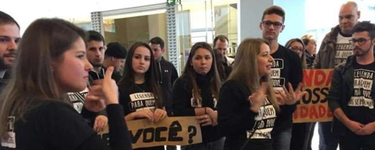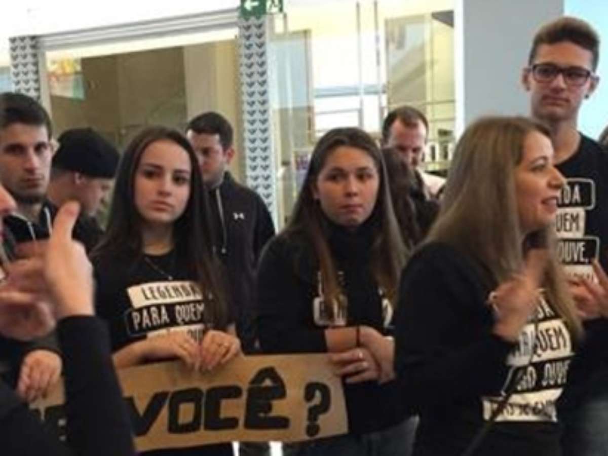 Um grupo de deficientes auditivos protestou em um cinema da cidade de Caxias do Sul (RS) no último sábado (03) demandando que fossem realizadas mais sessões legendadas — inclusive de filmes nacionais e animações.