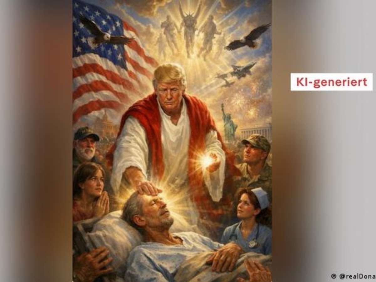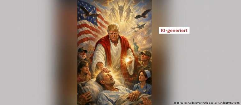 Ele conta com a ajuda de seus chamados "guerreiros dos memes": fãs e apoiadores que produzem diariamente imagens geradas por IA e memes para promover sua agenda política. "E todos naturalmente esperam que isso agrade tanto ao ídolo que ele mesmo acabe postando", diz Ullrich — como ocorreu com a imagem gerada por IA publicada por Trumpem meados de abril, após um atacas ao papa, na qual o republicano aparece como uma figura salvadora semelhante a Jesus. A publicação foi apagada pouco depois, entre outros motivos, devido a críticas vindas do próprio campo conservador.