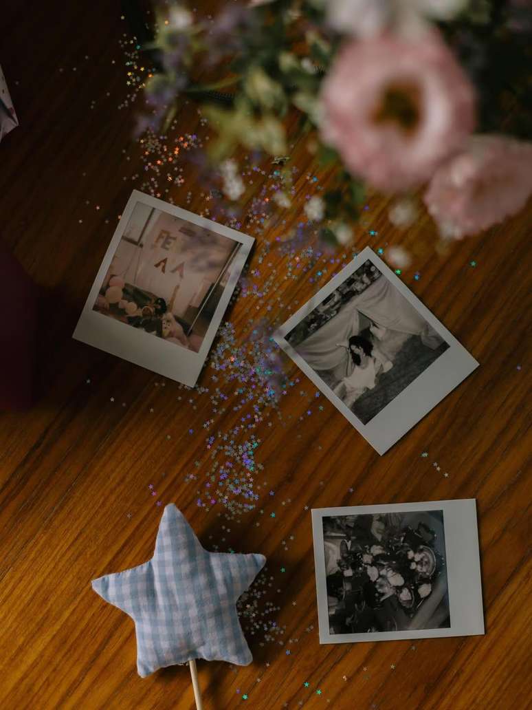 Memórias afetivas: Espalhe fotos da família no estilo polaroide para criar um mural de carinho.
