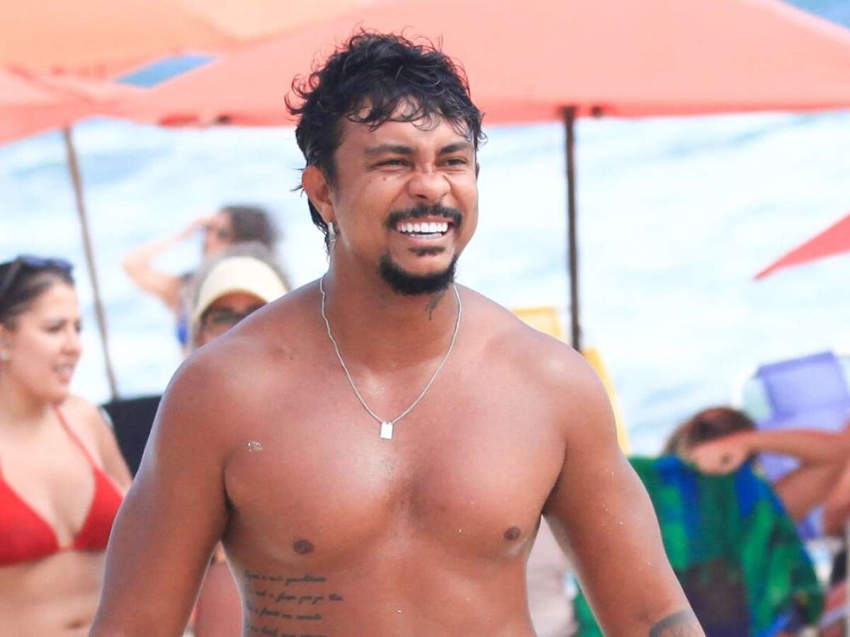 Damião em 'Renascer', Xamã exibe corpo definido e repleto de tatuagens em dia de praia com altinha e chuveirada