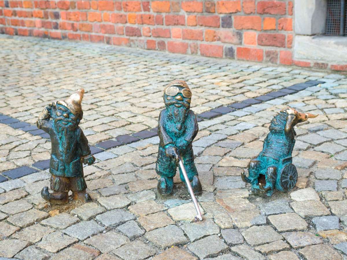 Quem caminha hoje pelo centro histórico de Wrocław, no sudoeste da Polônia, costuma esbarrar em pequenas esculturas de bronze.