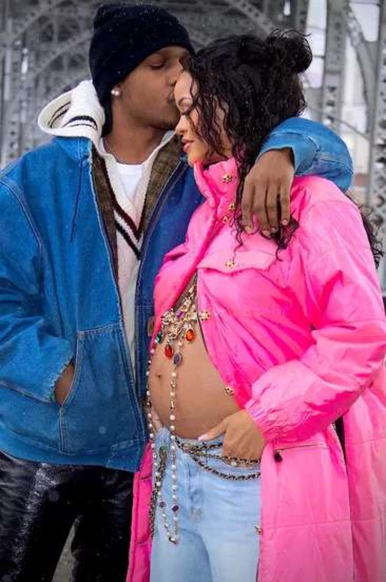 A primeira gravidez foi revelada em janeiro de 2022, quando Rihanna foi flagrada caminhando por Nova York com o casaco aberto e a barriga à mostra. O casal não havia planejado o momento, mas, segundo entrevista da artista à Vogue, também não estava evitando: