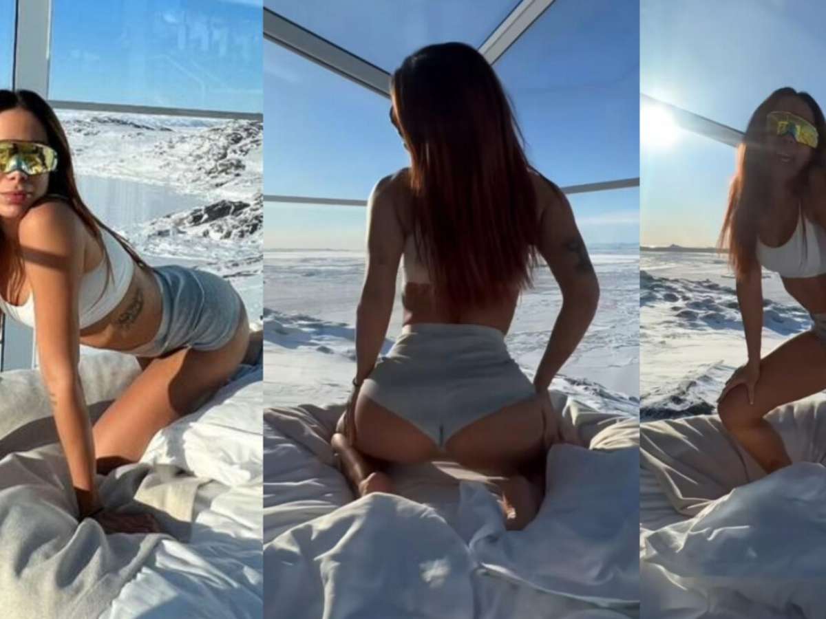 Anitta surge de biquíni fio-dental na neve e rebola bumbum para a câmera: 'Dia muito louco'