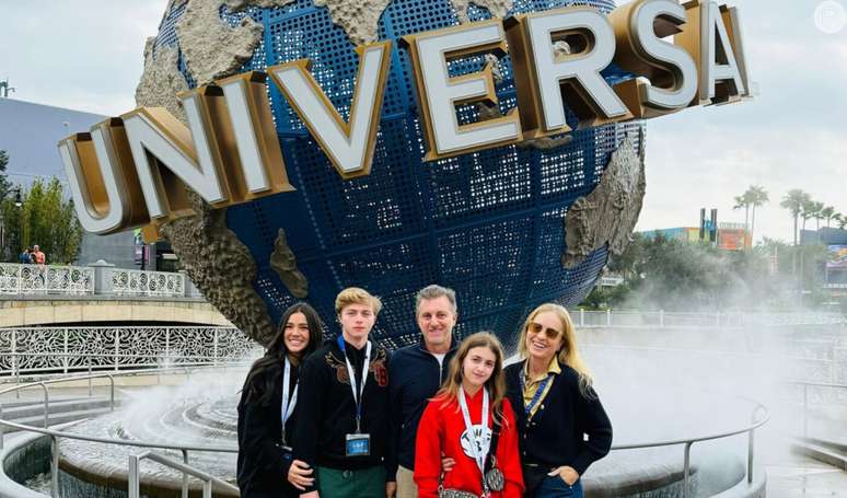 Em família! Namorada de Benício, Duda Guerra curte parques de Orlando com o rapaz, Angélica e Luciano Huck: 'Inesquecível'