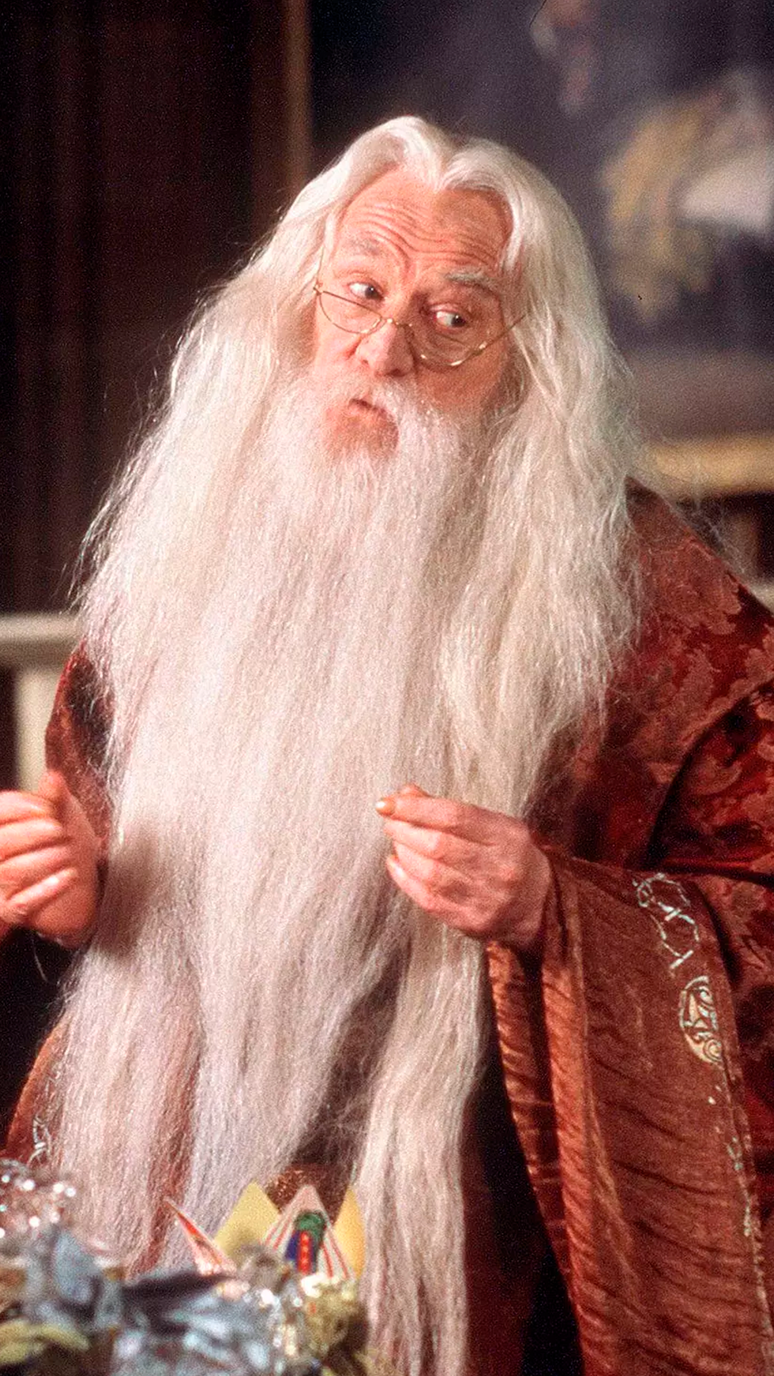 Harris, que conta com mais de 30 produções no currículo, participou dos dois primeiros filmes da saga e depois precisou ser substituído por Michael Gambon, que viveu o mago até a conclusão da trama.