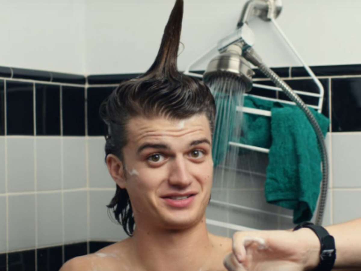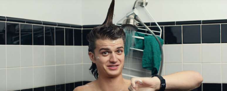 No segundo comercial, Keery revive o início do filme de John Hughes, em que Bueller aparece quebrando a quarta parede e conversando diretamente com o público. Não se lembrou da cena? É aquela clássica em que Broderick está tomando banho com um moicano no cabelo. Confira!
