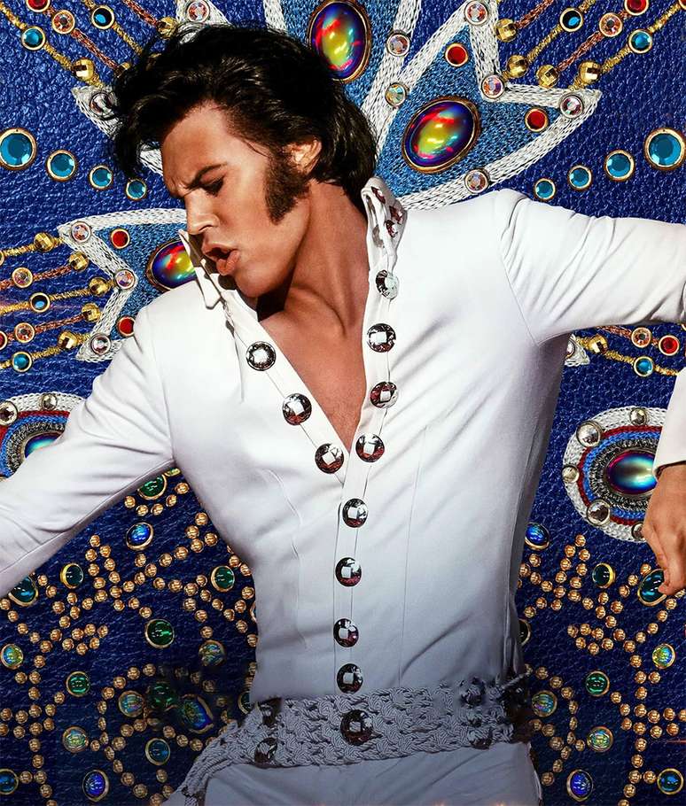 O ator Austin Butler (de "Era Uma Vez em… Hollywood") usou mais de 90 figurinos ao longo do filme "Elvis" para se caracterizar como o Rei do Rock.