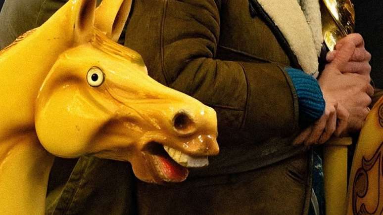 O que o estúdio não esperava, no entanto, era que uma imagem romântica dos personagens de Florence Pugh e Andrew Garfield fosse viralizar pelo motivo "errado". Publicada há alguns dias, a foto mostra o casal abraçado enquanto aproveita o passeio em um carrossel. O intérprete do Homem-Aranha abraça a atriz de Midsommar enquanto ela ri. Mas quem roubou a cena foi o cavalo um pouco abaixo deles, com um olhar tão bizarro quanto penetrante.