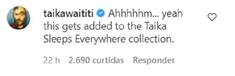 O diretor respondeu à brincadeira em seu Twitter, comentando: "Hã… É, isso será adicionado à coleção 'Taika dorme em qualquer lugar'".