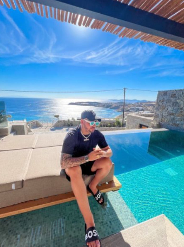 Na ilha grega, o influencer não perdeu a oportunidade de andar de iates luxuosos, descansar na areia da praia e se jogar nas baladas noturnas.