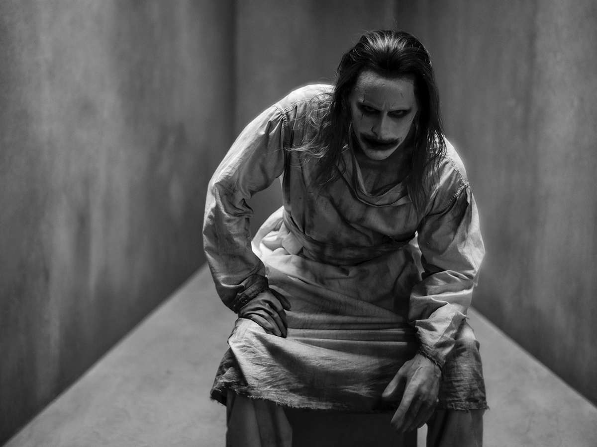 Além disso, a roupa roxa clássica do personagem foi substituída por uma camisola encardida de hospital.