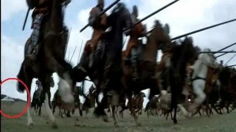 Apesar do sucesso da trama, aqueles de olhos desatentos provavelmente deixaram passar um detalhe que pode acabar com toda a imersão do espectador se percebido. Isso porque por volta de uma hora e meia de filme, quando nosso protagonista está discursando para as tropas atacarem, é possível presenciar um carro em meio à tomada. O veículo aparece no canto inferior esquerdo da cena, e você pode conferir o momento abaixo: