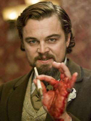 Leonardo DiCaprio teve corte real durante cena de 'Django' (Foto: Divulgação)