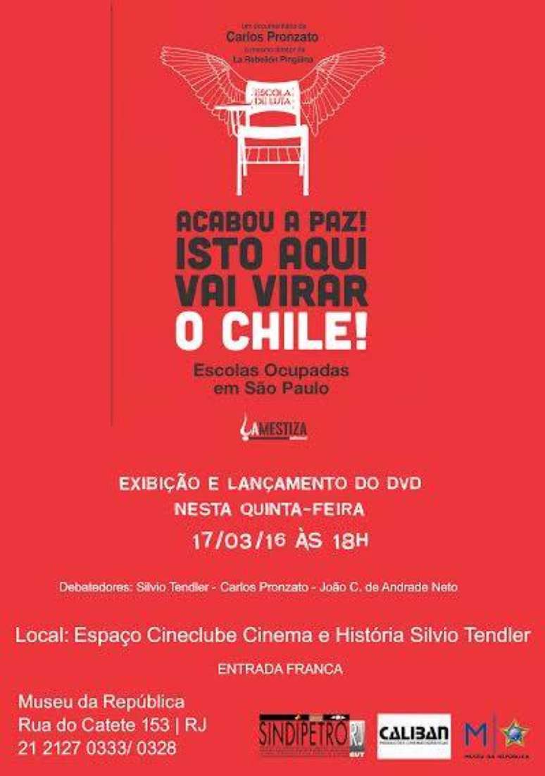 O documentário "Acabou a Paz, Isto Aqui Vai Virar o Chile. Escolas Ocupadas em São Paulo" conta a história do movimento que aconteceu no segundo semestre de 2015 contra o fechamento de 94 escolas de São Paulo pelo Governo de Geraldo Alckmin.