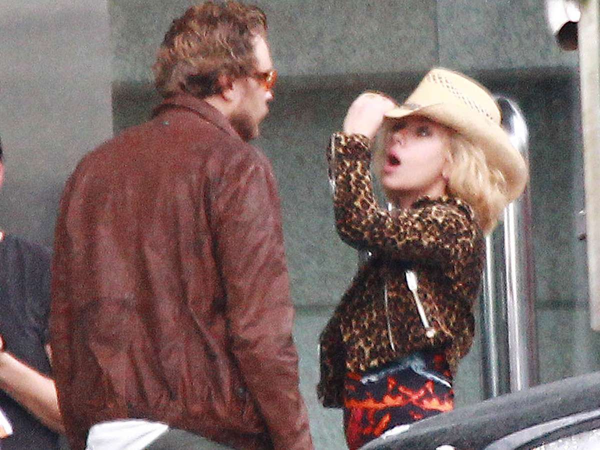Scarlett Johansson passou a segunda-feira (21) gravando seu mais novo filme, Lucy, na China. Na ação, ela vive uma mulher forçada a trabalhar para o narcotráfico que adquire superpoderes. A atriz aparece usando uma jaqueta de oncinha, chapéu de cowboy e algemada em uma das fotos.