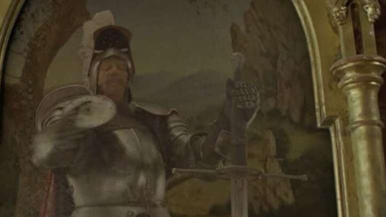 Você pode não lembrar, mas Paul Whitehouse interpretou Sir Cadogan em Harry Potter e o Prisioneiro de Azkaban (2004). O personagem pode ser visto como um dos retratos mágicos nas paredes ao fundo Hogwarts quando a Mulher Gorda desaparece.