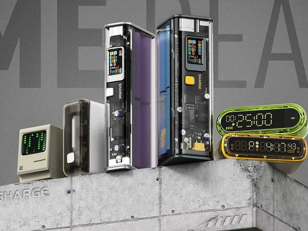 A Sharge produz Powerbanks, que são os bancos de bateria portáteis utilizados para carregar seus aparelhos quando você não está em casa. E essa marca, em específico, investiu numa linha de carregadores transparentes que estão sendo imitados por outras empresas.