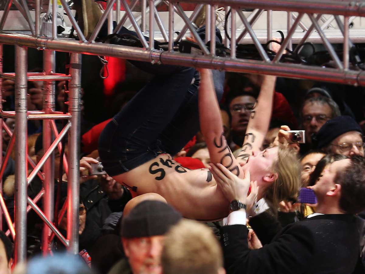 Ativistas ucranianas do movimento feminista Femen protestaram nesta quinta-feira com os seios à mostra na cerimônia de inauguração do Festival de Berlim