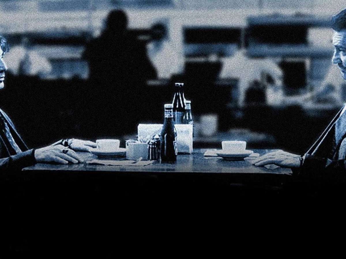 A tensão entre os dois personagens culmina em uma das sequências mais lembradas dos anos 90: a conversa entre eles em uma lanchonete, carregada de silêncio, olhares e ameaças veladas. Curiosamente, apesar de já terem participado do mesmo filme em O Poderoso Chefão - Parte II (1974), os dois só dividiram cena nesse longa.