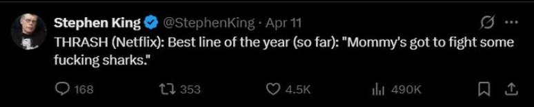 Em meio a tubarões, enchentes e situações improváveis, foi uma simples linha de diálogo que capturou a atenção do público e de Stephen King.
