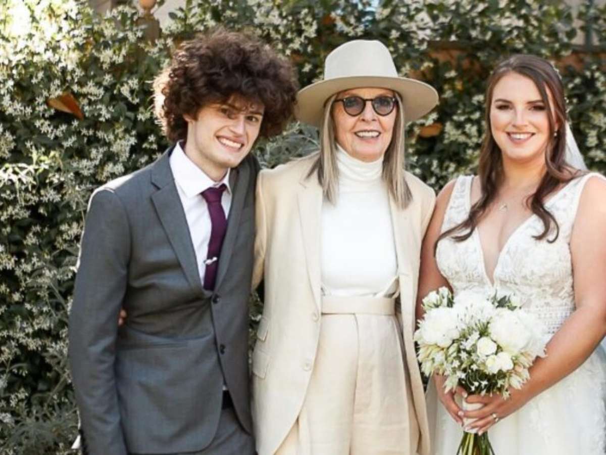 A vida em família sempre foi preservada por Diane Keaton, mesmo sendo figura constante nas redes sociais. Uma das raras fotos com os filhos foi no casamento de Dexter, com o piloto Jordan White, em 2021.