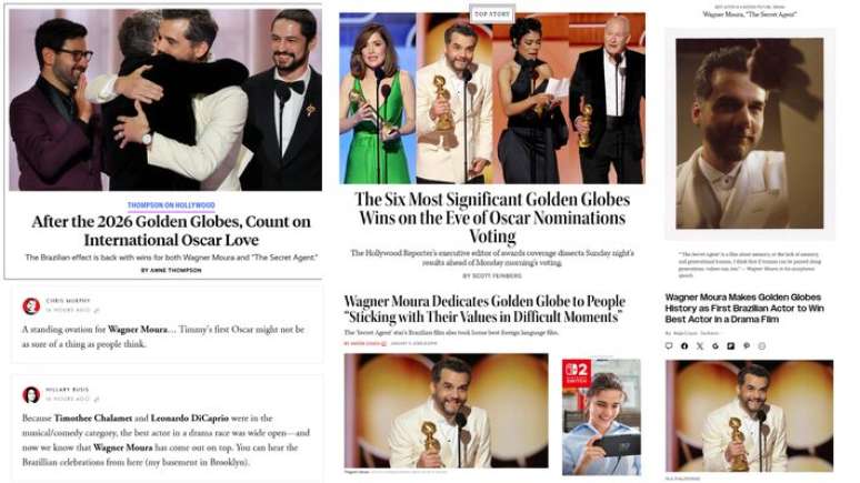 As vitórias de O Agente Secreto no Globo de Ouro 2026, realizado neste domingo, 11, repercutiram nos principais veículos de cultura e entretenimento dos Estados Unidos. O longa de Kleber Mendonça Filho venceu as categorias de Melhor Filme de Língua Não Inglesa e de Melhor Ator em Filme de Drama, com Wagner Moura.