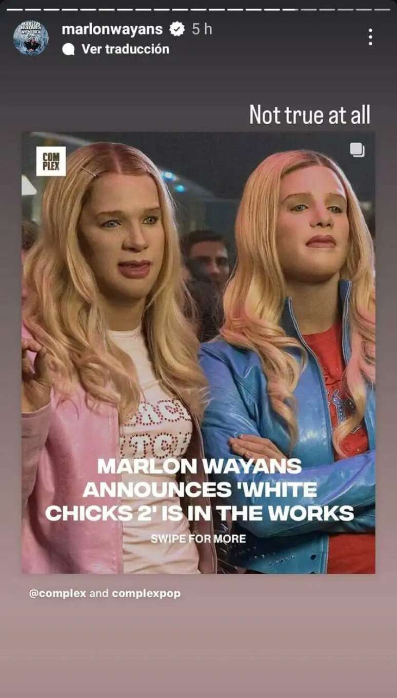 O ator Marlon Wayans usou suas redes sociais para desmentir uma informação recente sobre a sequência do filme As Branquelas. Durante uma entrevista, Marlon havia confirmado que o icônico filme de 2004 ganharia uma continuação, mas voltou atrás nos stories do Instagram. "Não é verdade", afirmou o ator.