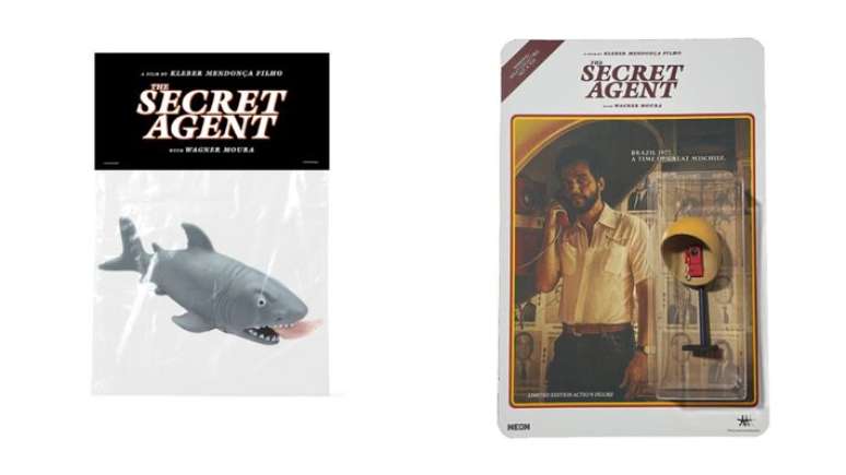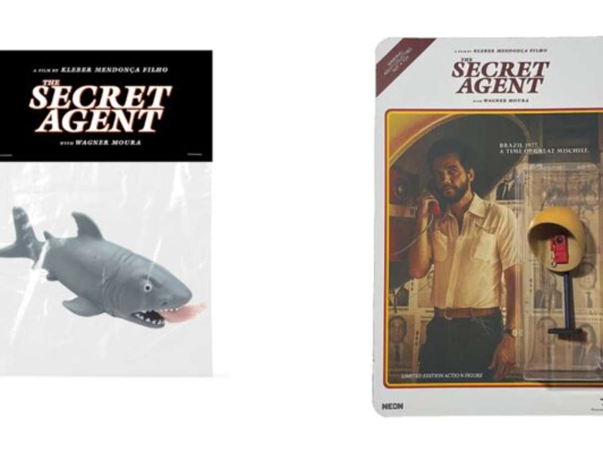 A Neon, distribuidora norte-americana do longa O Agente Secreto, revelou nesta quinta-feira, 12, uma série de produtos temáticos inspirados no filme de Kleber Mendonça Filho. Além de camisetas e pôsteres, a loja também conta com dois brinquedos que remetem a símbolos importantes da trama — um tubarão com uma perna na boca e o orelhão amarelo.