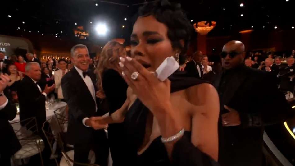 Atriz se assusta e pula para trás ao ser anunciada como vencedora do Globo de Ouro