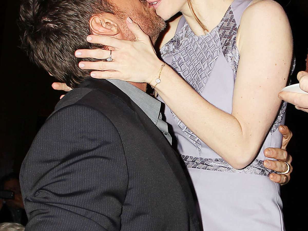 Hugh Jackman e Amanda Seyfried deram um selinho durante festa de 'Os Miseráveis' em Nova York