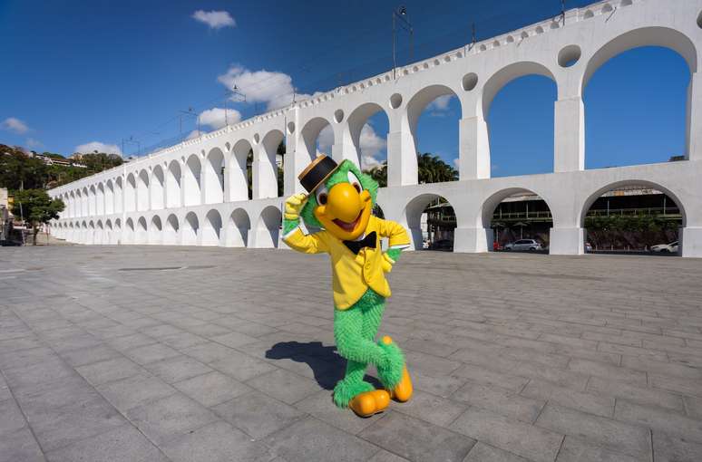 Com direito a poses no Arcos da Lapa e no Aterro do Flamengo, que contempla uma linda paisagem com o Pão de Açúcar de fundo, Zé Carioca celebrou a data especial.