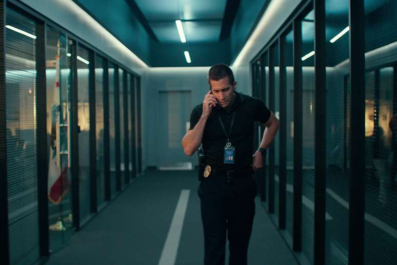 Jake Gyllenhaal atende ligação tensa no trailer de "O Culpado"