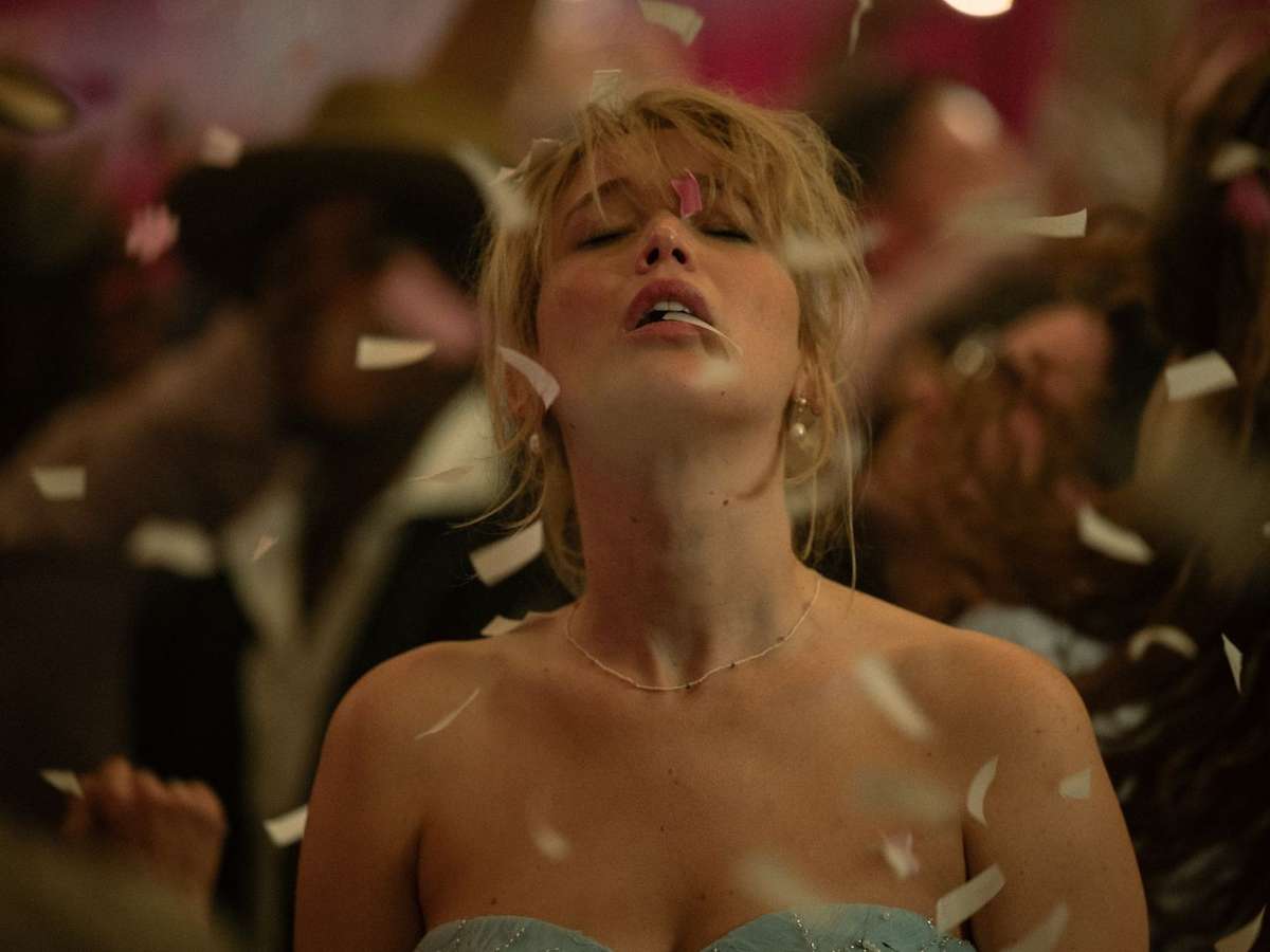 Mas a principal palavra que vem à mente quando você vê a estrela abraçar uma loucura cada vez mais envolvente é "livre". Não se trata apenas de Lawrence estar sentada em uma prateleira de uma geladeira aberta, cuspindo cerveja como uma fonte. Ou de ela andar de quatro, farejando o parceiro como uma pantera no cio. Ou mesmo de ela cutucar o chão distraidamente com uma faca de açougueiro, enquanto a outra mão desliza para dentro das calças. Trata-se mais de testemunhar o tipo de fluxo intenso que normalmente se associa a solistas de jazz e atletas profissionais. Lawrence está liberta de qualquer coisa que se assemelhe a decoro ou autoconsciência aqui. Ela está 100% comprometida em incorporar uma mulher que não está mais à beira de um colapso nervoso, mas já imersa em um.