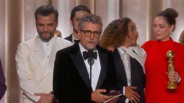 Diretor celebrou a equipe e destacou a importância de seguir fazendo cinema ao receber prêmio de Melhor Filme em Língua Não Inglesa