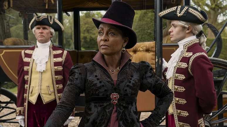 A atriz Adjoa Andoh interpreta a veterana Lady Agatha Danburry nas quatro temporadas de Bridgerton e no spin-off Rainha Charlotte: Uma História Bridgerton.