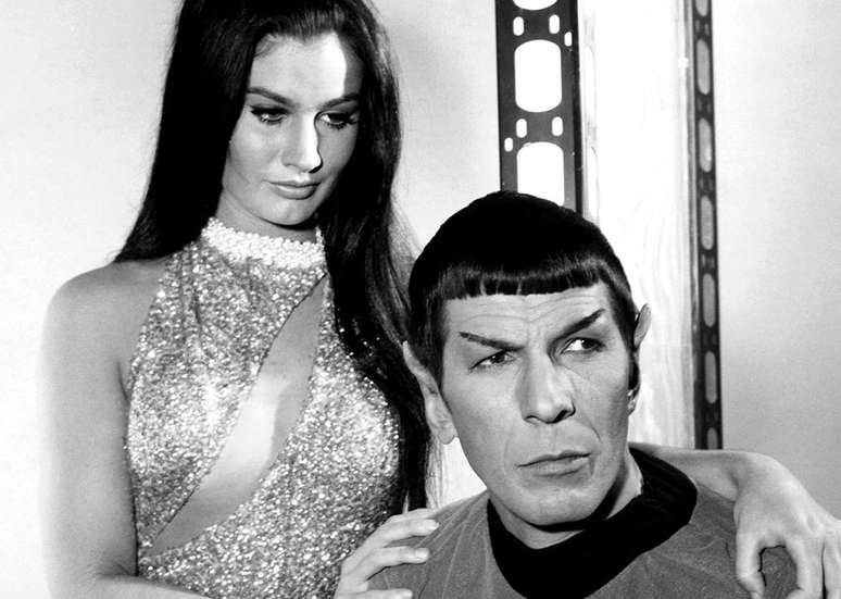 Veja abaixo a cena da atriz no vestido verde brilhante de Ruth Bonaventure, que até hoje rende cosplay dos fãs de "Star Trek".