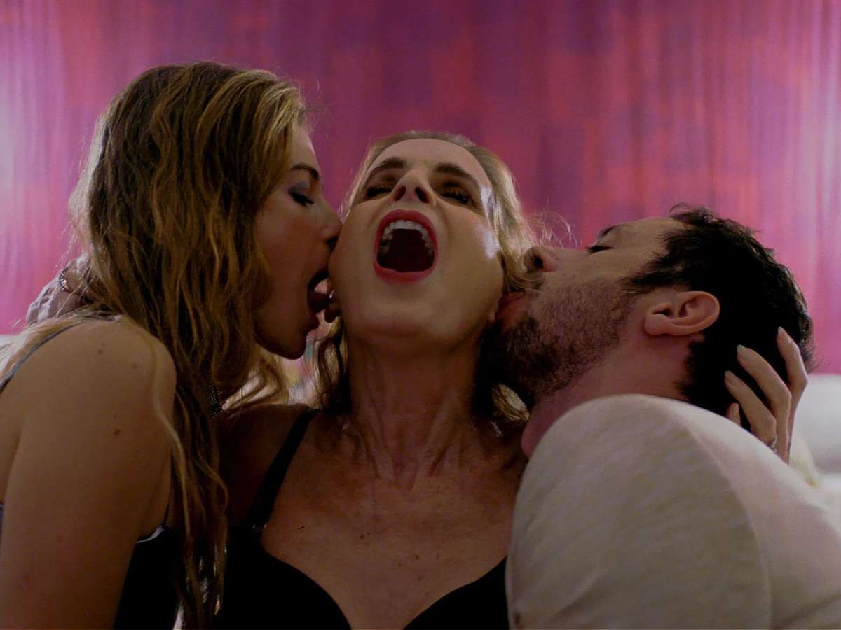 Na primeira metade de Yes, Lapid mantém tudo no máximo — há momentos em que parece que a própria câmera está em convulsão. O caos reina: cenas que lembram números musicais distorcidos, festas povoadas por figuras grotescas à la Federico Fellini, ou até o relacionamento do casal culminando com ambos atravessando uma porta com a cabeça. Bronz, conhecido como performer e poeta avant-garde, revela-se um excelente comediante físico. O mesmo vale para Dor, ex-bailarina que equilibra sensualidade, humor físico e expressão corporal. É o tipo de filme que insere, sem cerimônia, imagens grotescas e surreais — como a cabeça de um guru de relações públicas se transformando em uma tela de vídeo.