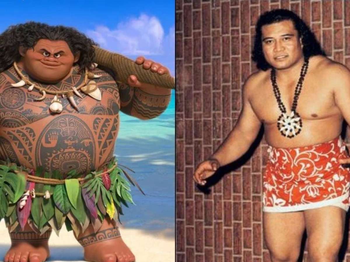 O próprio Dwayne Johnson revelou em uma publicação de 2017 nas redes sociais que Maui foi "parcialmente inspirado" pelo seu falecido avô, Peter Maivia. É impressionante as semelhanças entre o personagem de Moana e o avô de The Rock.