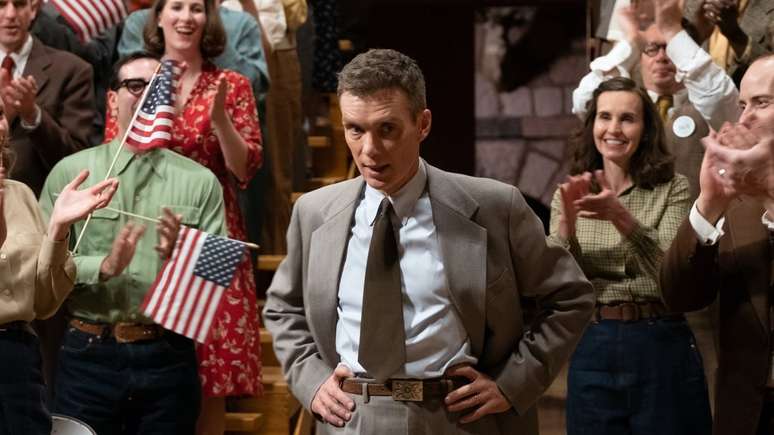 De 1912 até 1959, a bandeira dos EUA era composta por 48 estrelas, sendo que cada uma delas representava um dos estados do país. A bandeira que conhecemos hoje, com 50 estrelas, só foi adotada em 1960 - com a inclusão do Alasca e Havaí. Na cena de Oppenheimer, a versão que vemos é a com 50 estrelas.