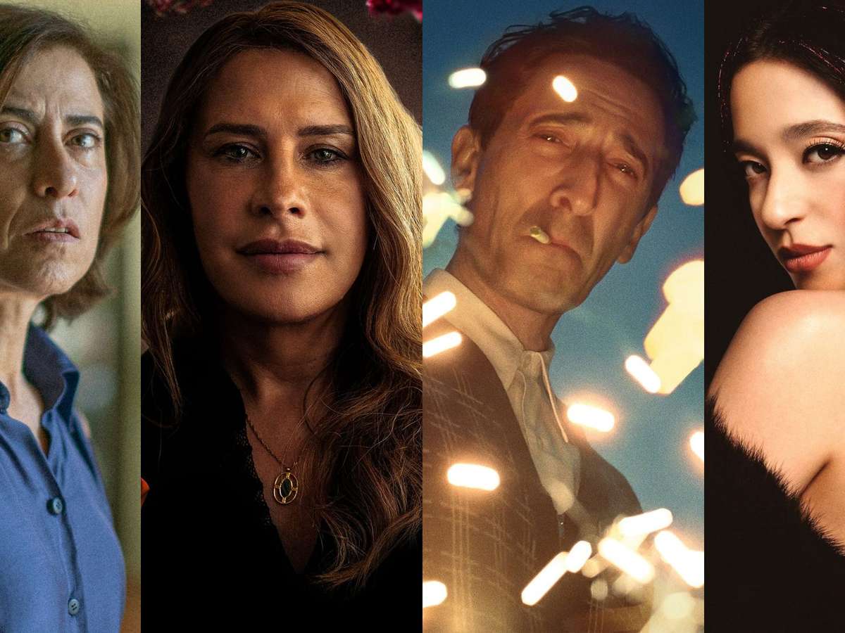 - O Brutalista:A produção narra a história do arquiteto visionário László Toth (Adrien Brody, O Pianista) e sua esposa, Erzsébet (Felicity Jones, A Teoria de Tudo), que, em 1947, escapam da Europa devastada pela guerra para recomeçar e ajudar a moldar a América moderna. No entanto, a chegada de um cliente enigmático muda radicalmente o curso de suas vidas.