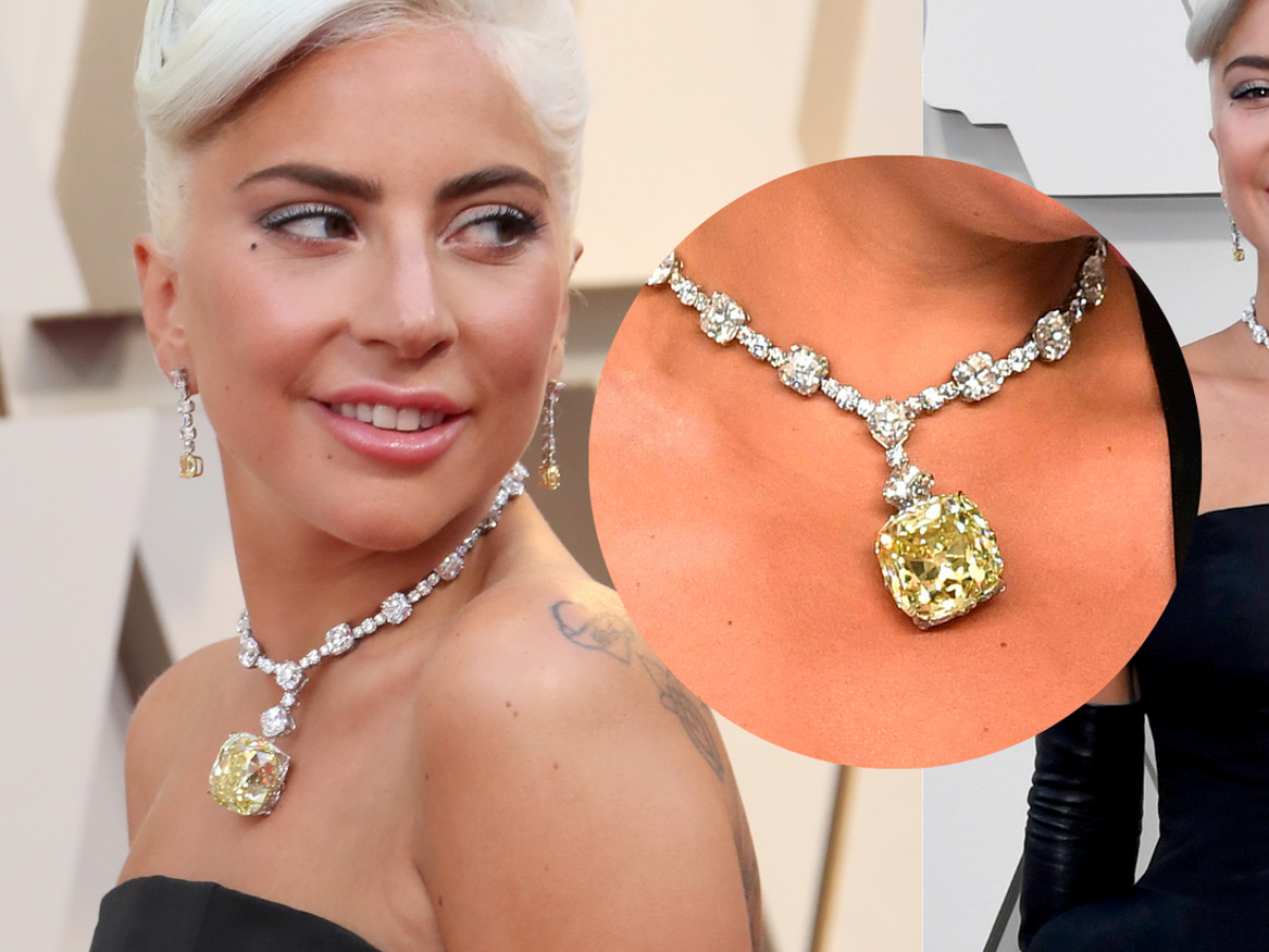 O colar com diamante amarelo de 128 quilates usado por Lady Gaga no Oscar é uma das joias mais valiosas já vistas no tapete vermelho da premiação!